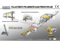 In the laminating room the laminating table, Automatic suction hanger , assembling table, PVB unwinding machine with film rolls driven by motor, Automatic suction hunger, convenient for processing of large and big glasses.